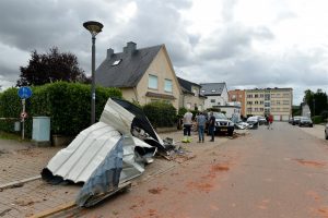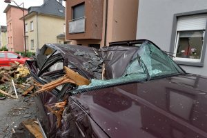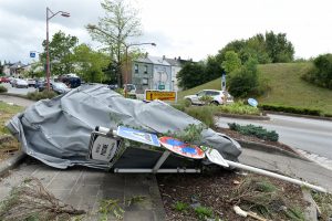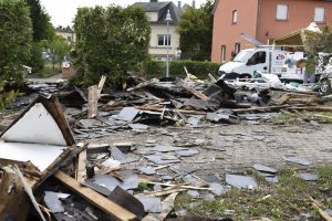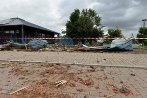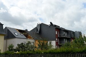 Max Penné ist Trainer der Cadets beim Verein UN Käerjeng und kickte mit seinen Spielern auf dem Fußballplatz, als sich dunkle Wolken am Horizont bildeten. „Plötzlich wurde es überall schwarz, Objekte flogen durch die Gegend“, schildert er. Das war gegen 17.40 Uhr, als das Wetter im Anzug war. Penné brach das Training umgehend ab und auch die für den restlichen Abend vorgesehenen Einheiten wurden abgesagt. Der Schaden für den Verein ist riesig. „Die Dächer der Sporthalle und des Kulturhauses ‚Käerjenger Treff‘ sind völlig zerstört“, berichtet Penné. „Auch ein Lichtmast fiel in der Nähe des Rasens um.“