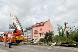 Häuser ohne Dach, zerschmetterte Autos und verwüstete Fußballfelder. In Petingen und Käerjeng hat der Tornado am Freitagabend Bilder der Verwüstung hinterlassen. Doch die Bewohner und Helfer, darunter auch Soldaten der Luxemburger Armee, lassen sich nicht unterkriegen. Nachdem sich der erste Schock nach der Nacht gelegt hat, wird am Samstag aufgeräumt. Allein gelassen werden sie dabei nicht.