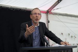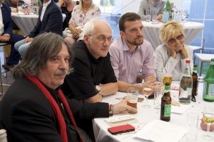 Die längste Laudatio hielt anschließend Alvin Sold, der die Geehrte wohl am besten kennt und sie als seine Nachfolgerin im Unternehmen aufgebaut hatte. Er sprach vom rasanten Wandel, den die Medienbranche im über 40-jährigen Berufsleben Danièle Foncks durchlebte. Was nichts daran ändert, dass „Danièle Fonck eine große Journalistin war. Neugierig, talentiert und vor allem unermüdlich“, so Foncks Vorgänger. „Und sie stellte sich der Herausforderung, als es darum ging, für den Gesamtbetrieb Verantwortung zu übernehmen. (…) Ich verneige mich also hiermit in großer Dankbarkeit vor Danièle Fonck und wünsche ihr für die Zukunft alles Gute im Privat- und im ‚Berufsleben‘. Denn richtige Journalisten bleiben Journalisten bis zum letzten Atemzug“, so Alvin Sold.