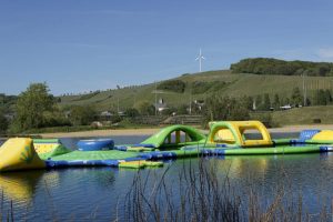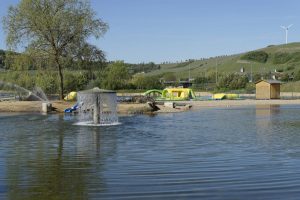 Neben dem neuen „Ninja’s Fight“, wie Bigatin den mit Luft gefüllten Wasserparcours bezeichnet, sind vor allem die von höher angelegten Büschen umringten Beachvolleyball-Plätze ein absolutes Highlight der Weiher. „Man glaubt fast, man wäre in einer Arena in Rom“, sagt der Bademeister begeistert.