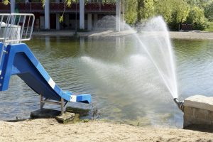 Eines der größten Probleme der Weiher sind Algen. Ab August wimmelt es in den Gewässern des Geländes nur so von grünen Wasserpflanzen. „Das kommt durch die Weinberge. Die Trauben werden mit Proteinen behandelt und wenn es regnet, läuft alles hier runter ins Wasser“, erklärt Carlo Bigatin. Um die Gäste vor unangenehmem Beinkontakt mit dem glibbrigen Grünzeug zu retten, benutzt das Team der Baggerweiher eine Art Mähmaschine. „Die Algen werden auf zweieinhalb Meter geschnitten, darüber ist das Wasser dann klar“, verrät Tom Weber. Der Geheimtipp vom Schwimmmeister: „Wenn man schon früh mit dem Schneiden anfängt, dann wird das Algenproblem gar nicht so groß.“