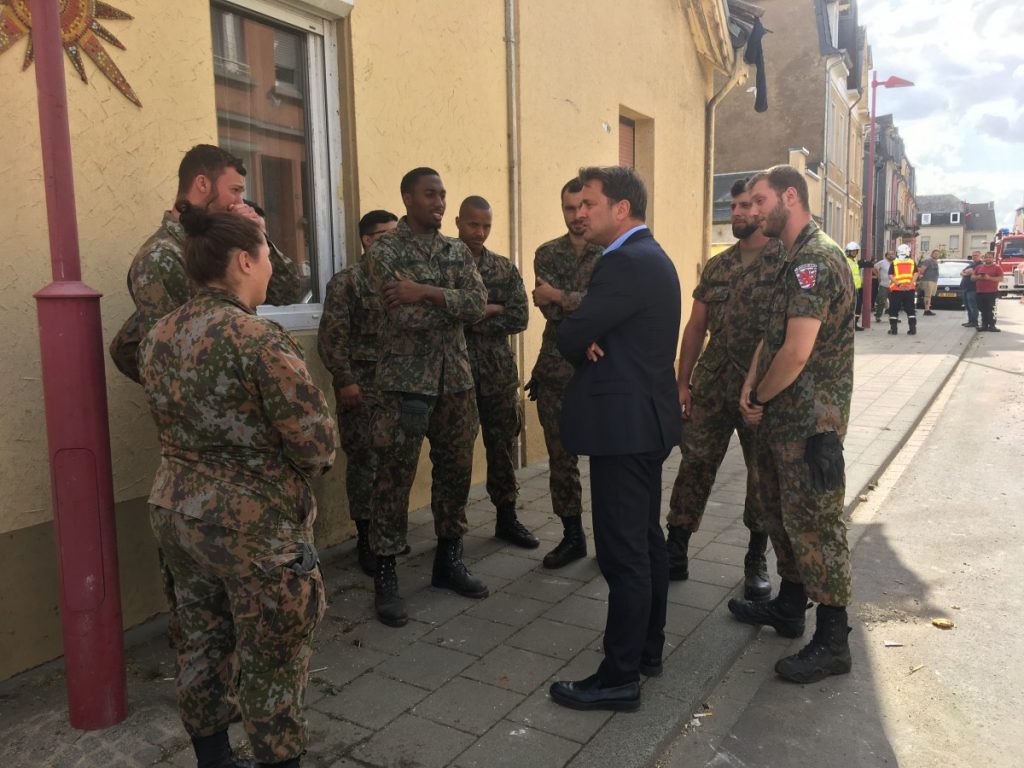 Neben diesen dringenden Prioritäten wurden am Samstag die Aufräumarbeiten fortgeführt. Die Gemeinde-Arbeiter der beiden Gemeinden Käerjeng und Petingen wurden hierbei von der Armee unterstützt. Ab 10 Uhr am Morgen waren 21 Soldaten mit Spezialwerkzeug im Einsatz. Weitere sollen folgen. Die Armee wird wohl ein paar Tage in den Gemeinden bleiben, um die Menschen und die Gemeinde-Verantwortlichen zu unterstützen. Auch die Polizei ist verstärkt im Einsatz, weil Plünderungen befürchtet wurden. Laut Arbeitsminister Dan Kersch habe es schon entsprechende Versuche gegeben.