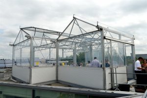 „Groof“, ein Dach-Gewächshaus, soll die lokale Lebensmittelproduktion und eine Reduzierung der CO2-Emissionen miteinander verbinden: Im Rahmen eines EU-Interreg-Programms testet Luxemburg, wie gut das funktioniert.