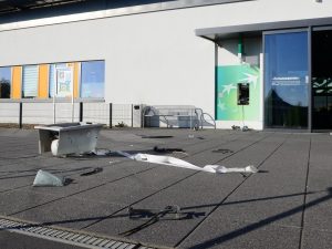 Der Schaden am Gebäude selbst hält sich in Grenzen, obgleich Trennwände im Eingangsbereich der Schwimmhalle teils deutliche Risse aufzeigen. Da die wenigen Spuren bereits am Montagmorgen gegen 8 Uhr gesichert waren, öffnete das Schwimmbad wie gewöhnlich.