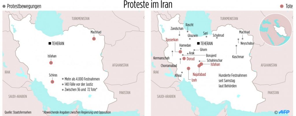 Immer wieder werden die heutigen Proteste mit jenen aus dem Jahr 2009 verglichen. Es gibt jedoch einen großen Unterschied. Die Proteste haben dieses Mal außerhalb der Hauptstadt begonnen, in Maschhad, der zweitgrößten Stadt des Landes. Erst danach entzündeten sie sich in anderen Orten, um letztendlich Teheran zu erreichen. Die Rolle der Kurden ist in diesem Kontext wichtig. Ein weiterer Unterschied im Vergleich zu 2009 ist die Tatsache, dass die Proteste damals rein politisch waren, sich heute aber vor allem gegen die schlechte Wirtschaftssituation richten.