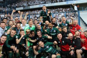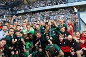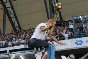 La stratégie policière est efficace, car il n’y a pas de blessés, de plus, les agents ne pénètrent pas dans le repère des fans radicaux de Poznan. Au bout d’une dizaine de minutes la tribune sud se vide, tout comme le reste du stade. Il ne reste plus que les 2.000 partisans du Legia dans leur secteur. Ces derniers ont remplacé leurs traditionnelles banderoles par deux messages: „Champion de Pologne“ et „Veni, vidi, vici“. Puis, au bout d’un quart d’heure les policiers abandonnent la pelouse. C’est alors que toute l’équipe du Legia revient devant le secteur de ses supporters. Leur joie explose, ils sont en communion avec leurs fans. Le capitaine va même jusqu’à prêter symboliquement le trophée au leader des ultras. Durant dix minutes ils célèbrent leur triomphe: coupe de Pologne et championnat. Les joueurs vont même jusqu’à prendre le mégaphone des ultras pour lancer les chants de la fameuse tribune Zyleta. La soirée s’achève ainsi, dans une explosion de joie pour les partisans du club de la capitale et finalement avec plus de peur que de mal.