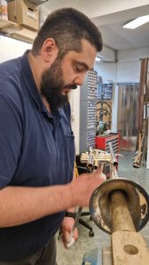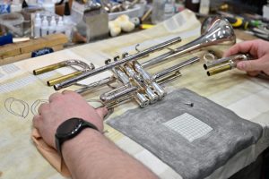 Die Arbeitsteilung ist klar: Vervloessem betreut die Blechbläser, González Blanco die Holzbläser. „Tauschen können wir nicht einfach – das sind sehr unterschiedliche Arbeiten.“ Holzblasinstrumente verlangen feines Gespür, bei Blech darf es hingegen auch kräftiger zugehen. Vor allem erfordert der Beruf ein genaues Verständnis der Instrumente, der Marken und der unterschiedlichen Materialien.