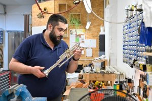 Heute haben sich beide im Süden Luxemburgs eine treue Kundschaft aufgebaut. „Viele kommen regelmäßig – einmal im Jahr, einmal im Monat, manche öfter. Manchmal auch nur auf einen kurzen Austausch“, erzählt Vervloessem. Zeit für die Kundschaft sei entscheidend, gerade weil Instrumente keine Wegwerfgegenstände sind – und für viele mit starken Emotionen verbunden. „Die Kunden erwarten von uns auch eine gute Beratung. Dafür muss man sich Zeit nehmen und viel Wissen aneignen“, sagt Vervloessem. Eigentlich wären er und seine Partnerin froh, eine feste Aushilfe im Vorbereich zu haben. „Doch viele überfordert einfach die Menge an Informationen, die man sich aneignen muss.“ Der größte Konkurrent sei allerdings der Staat, sagt der Instrumentenbauer. „Musiklehrer verdienen deutlich mehr, als ich ihnen hier im Geschäft zahlen kann.“ Eine Ausbildung zum Instrumentenbauer in Luxemburg sei schwierig. „Wir können einem hier zwar die Praxis anbieten, doch für die Theorie müsste man pendeln, wahrscheinlich nach Deutschland. Aber das ist für viele zu weit.“