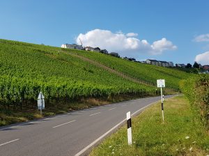 Vorweg: Die Route E über die Mosel und das Hinterland ist nur etwas für trainierte Radfahrer. Oder für E-Bikes. Jedenfalls sind die 85 km fordernd. Aber lohnend zugleich. Denn größtenteils fährt man auf Rad- und Feldwegen und kann zum Teil atemberaubende Ausblicke stressfrei genießen. Wenn da nicht die fehlende Beschilderung wäre, die das Zurechtfinden auf ungewohnten Terrain quasi unmöglich macht …