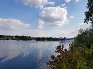 Auf dem Rad- und Feldweg in Olingen hat man einen wunderbaren Blick auf die riesigen Satellitenschüsseln der SES in Betzdorf, es geht anschließend immer wieder für kurze Stücke in den Straßenverkehr, aber ohne dass das wirklich problematisch wäre. Bei km 40 brennt es noch einmal so richtig in den Beinen, denn nach Manternach geht es rauf bis nach Münschecker. Allerdings entschädigt auch hier der anschließende Ausblick ins Moseltal und auf die deutsche Seite für die Strapazen. Die Mosel ist also bei Mertert erreicht, die Unterführung unter der Route du Vin vermeidet jedes Risiko für den Radfahrer. Ab hier wird entlang des Wassers „gecruised“. Auf dem Rad- und Spazierweg entlang der Mosel ist immer viel los, träumen auf dem Rad ist mitunter eine schlechte Idee hier. Auch in Wormeldingen, wo am Radweg gearbeitet wird und es ein ziemlich unangenehmes Stück auf der Straße zu fahren gibt.