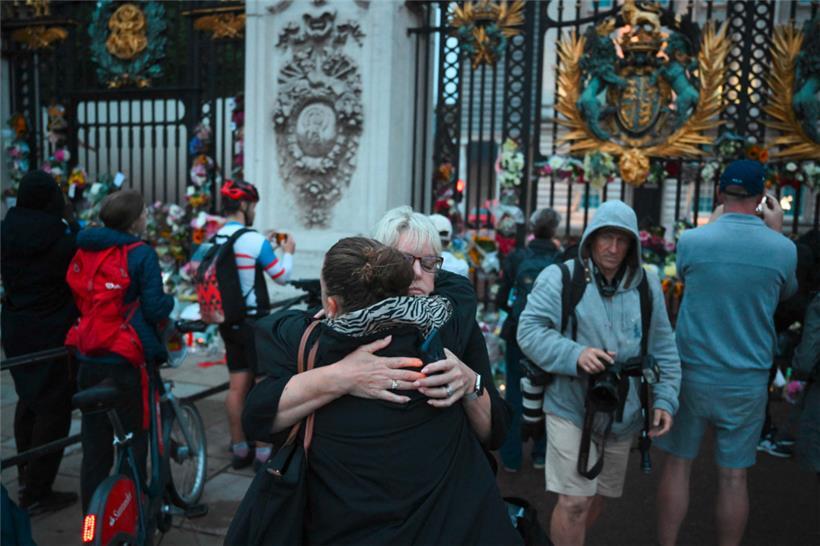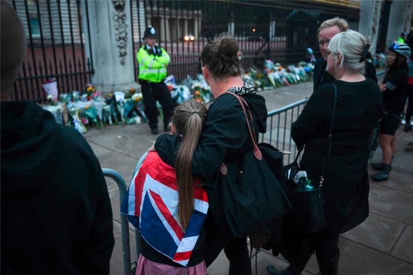 Als die Männer in Schwarz die Nachricht des Todes von Königin Elizabeth II. am Zaun vom Buckingham-Palast anbringen, fließen Tränen. Einige der Umstehenden stimmen die Nationalhymne an, passenderweise heißt sie „God Save the Queen“. Die Königin starb friedlich in Balmoral an diesem Nachmittag, steht auf dem schlichten weißen Blatt Papier mit Holzrahmen. Smartphones überall. Die Queen ist tot, 96 Jahre alt ist sie geworden. Menschen strömen am Donnerstag zum Palast in London. Polizisten bewachen inmitten von niedergelegten Blumen das Gebäude. Sorgenvolle Blicke, Umarmungen.