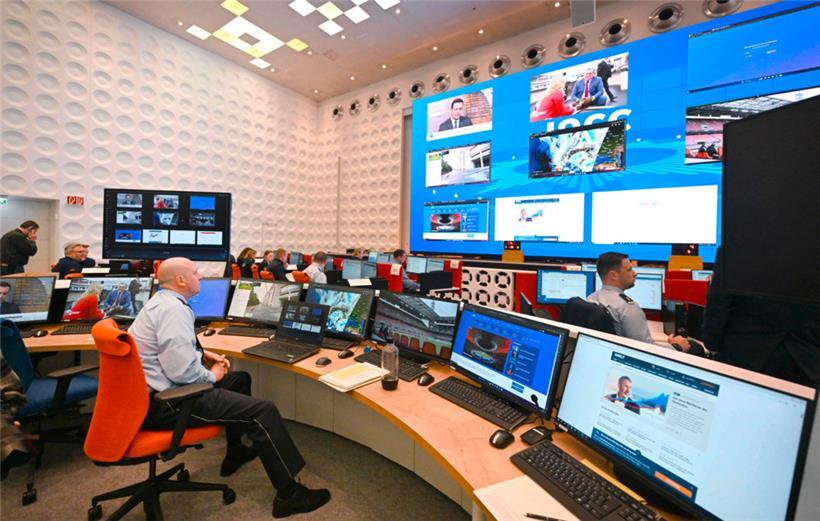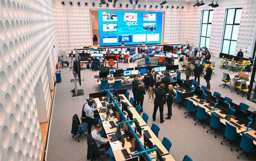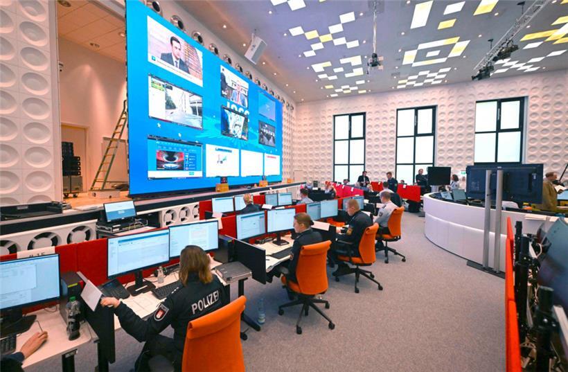 500 Quadratmeter groß, 129 Arbeitsplätze und Technik ohne Ende: Rund sieben Wochen vor der Heim-EM ist in Neuss das Polizei-Lagezentrum von Bund und Ländern sowie der internationalen Partner vorgestellt worden. In dem so genannten „International Police Cooperation Center“ (IPCC) laufen während des Turniers (14. Juni bis 14. Juli) alle Fäden der Sicherheitsbehörden zusammen. Die EM werde auch für die Polizei "ein Großereignis", wie Herbert Reul (CDU), Innenminister von Nordrhein-Westfalen, sagte.