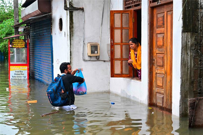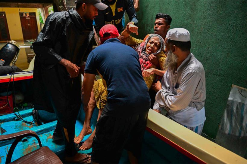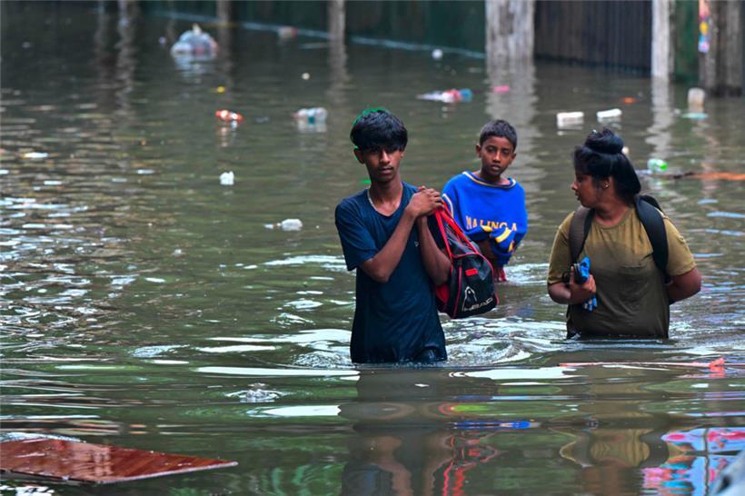 Viele Häuser in Colombo standen am Sonntag komplett unter Wasser. Darunter war auch das Haus der 46-jährigen Selvi aus dem Vorort Wennawatte. Sie wisse nicht, wohin sie gehen solle, sagte sie der Nachrichtenagentur AFP. Sie hoffe, mit ihrer Familie in einer sicheren Notunterkunft Zuflucht zu finden.