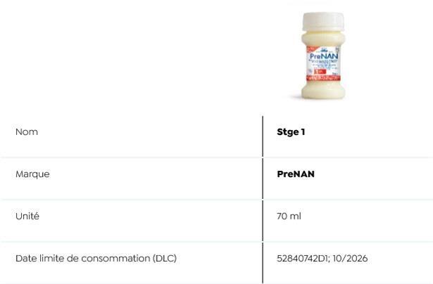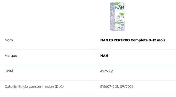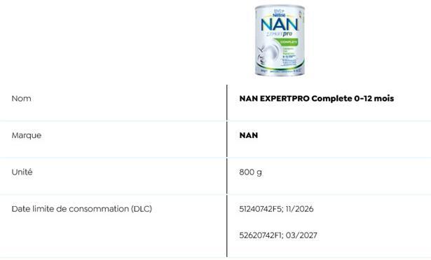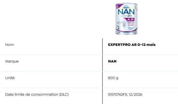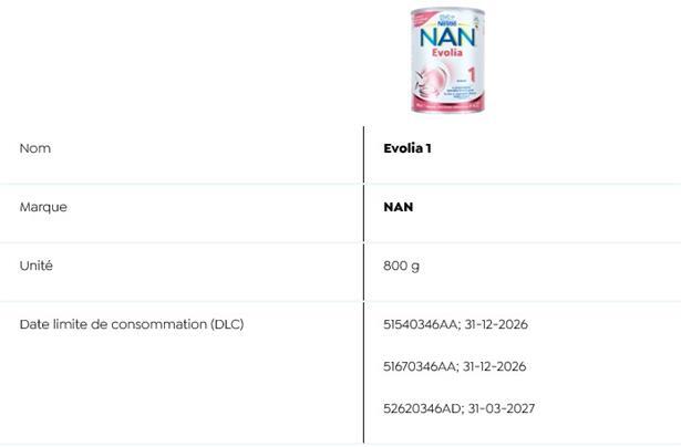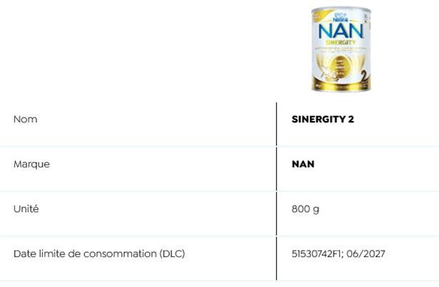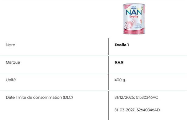 Auch die „Sécurité alimentaire“ listet auf ihrer Webseite sämtliche Details zu den betroffenen Produkten auf. Es handelt sich dabei um Fertigmilch und Milchpulverprodukte: Stge 1 (70 ml) der Marke PreNAN und Alfamino (400g) der Marke Nestlé sowie folgende NAN-Produkte Evoilia 1 (400 g und 800 g), Expertpro AR 0-12 Monate (4x26,2 g), Expertpro AR Mix 0-12 Monate (800 g), Expertpro Sans Lactose (400 g), Nan Expertpro Complete 0-12 Monate (800 g und 4x26,2 g), Sinergity 2 (800 g).