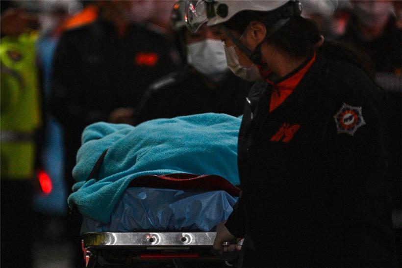Rettungskräfte und Feuerwehrleute sind an der Unfallstelle im Einsatz. Dutzende Personen haben beim Ansturm auf Halloween-Feierlichkeiten in Seoul einen Herzstillstand erlitten. Wie die südkoreanische Nachrichtenagentur Yonhap berichtete, mussten Notfallkräfte bei mindestens 50 Menschen Wiederbelebungsmaßnahmen durchführen.