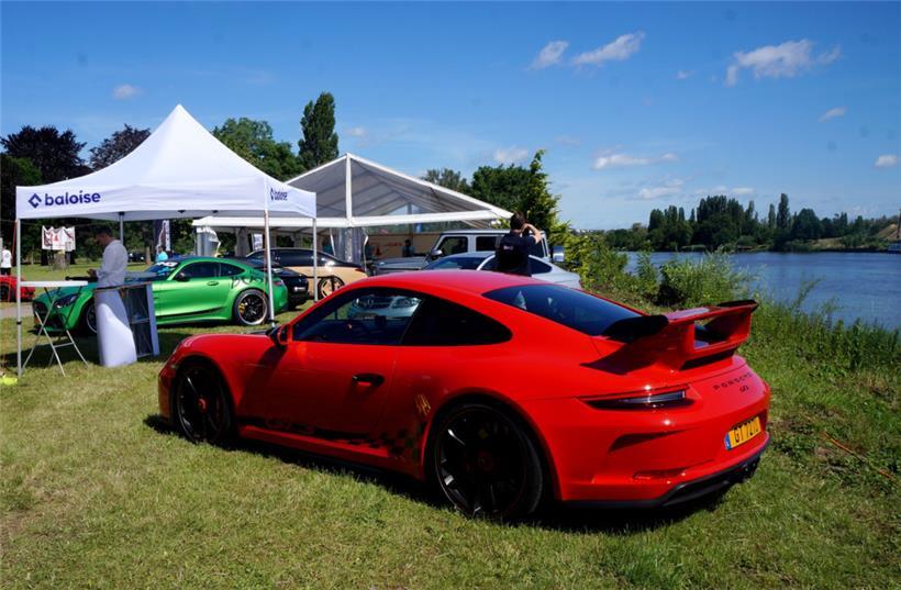 Wie hieß es einst in dem bekannten Song von Liedermacher Reinhard Mey „Über den Wolken“? „Wind Nord-Ost, Startbahn null-drei, bis hier hör’ ich die Motoren … und es dröhnt in meinen Ohren …“ Hier hat man zwar nicht abgehoben und schwebte auch nicht über den Wolken – obwohl: angehoben war es schon, was sich vor den Augen der Besucher auf der Festivalwiese neben der Marina im Schwebsinger Hafen bot. Im Minutentakt rollten auf Hochglanz polierte Luxusautos, größtenteils Young-, aber auch einige Oldtimer auf das Gelände und wurden vom Ordnungspersonal eingewiesen. Die Veranstalter hatten eigens farbig markierte Lanes installiert, in denen die Teilnehmer ihre Schätze abstellen und präsentieren konnten. So standen in einer Lane ausschließlich Porsche oder Mercedes, in einer anderen die italienischen Luxuskarossen von Ferrari und Lamborghini oder in einer weiteren die imposanten American Cars.