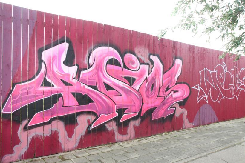 Mit Leitern ausgestattet, machten sich die Sprayer an den drei Meter hohen Holzbauzaun Foto: Carlo Catena
