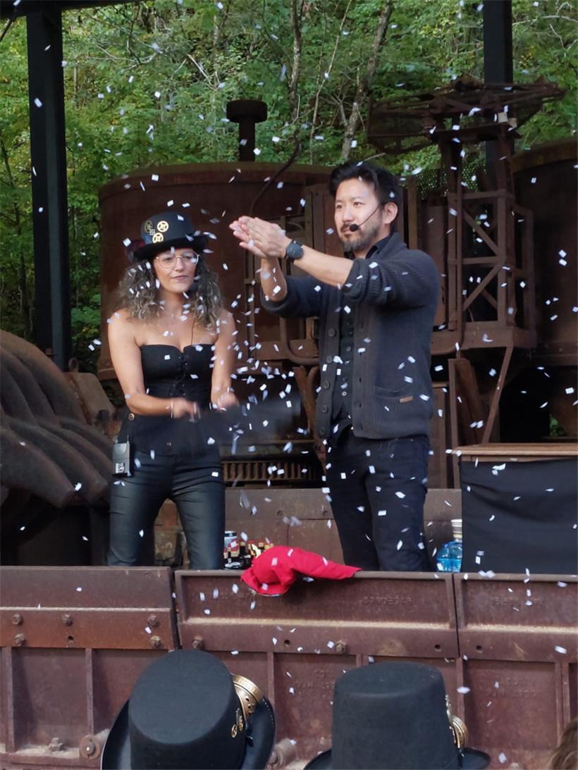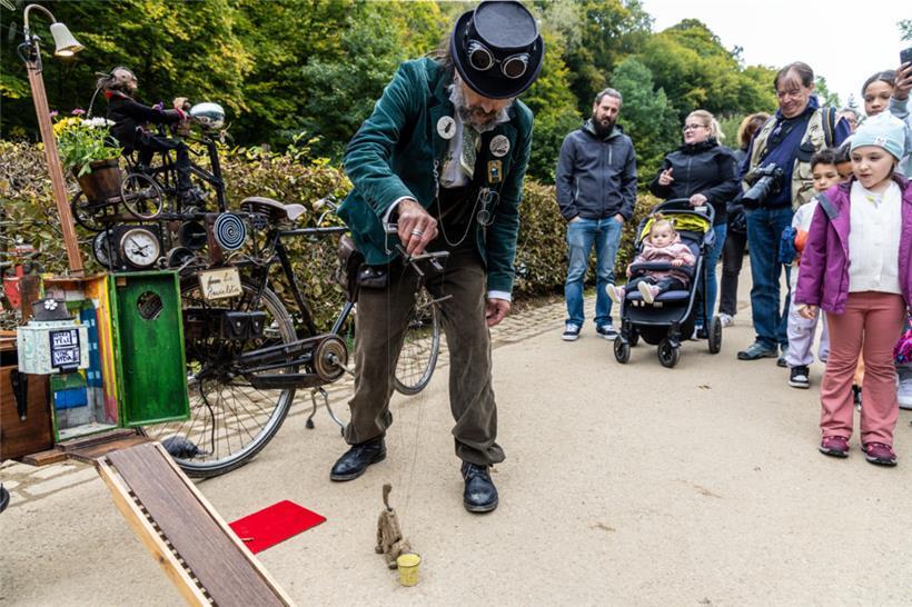 Für die einen ist es einfach ein Spaziergang oder geselliger Nachmittag in einem einzigartigen Ambiente, für andere ein Treffen mit Gleichgesinnten. Manch einer fachsimpelt über H.G. Wells oder Vintage-Objekte, während sich andere auf die hausgemachten Macarons in unzähligen Geschmackssorten freuen. Oder wie wäre es mit einer Fahrt in der „Minièresbunn“? Willkommen sind sie alle beim Anno 1900 – ob im Steampunk-Stil oder in Alltagskleidung, mit Faible für selbstgebaute Geräte, viktorianische Literatur oder Gin-Verkostungen.