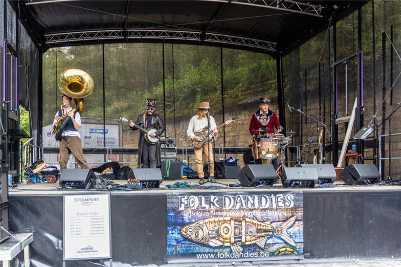 Events dieser Art gibt es mittlerweile in hoher Anzahl in Europa, allerdings sei dieses laut vielen Anwesenden „the Steampunk place to be“. Allein die Kulisse, mit Dampflokomotive und Backsteinarchitektur, fände man sonst nirgendwo vor. Demzufolge hieß es auch in Sachen Rahmenprogramm „Volldampf geben“. Musiker, Zauberer und andere Künstler wie die Band Turm und Strang aus Österreich oder die mittlerweile kaum mehr vom Anno 1900 wegzudenkenden Les Gavroches traten rund um die Paul-Wurth-Halle und den Bahnhof auf. Was die Stände betrifft: Accessoires und handgemachte Kleidung gab es selbstverständlich – eine gute Gelegenheit, um Handwerk und Kleinunternehmen zu unterstützen –, aber auch beispielsweise Skulpturen, Illustrationen und Mobiliar. Wer für ein Getränk oder ein „Fondant aux pommes“ vorbeikommen wollte, kam mit der breiten Auswahl an Deftigem, Süßem, Teekannenfreundlichem und Spirituosem auf seine Kosten.