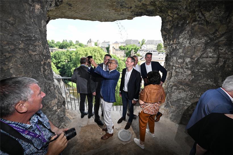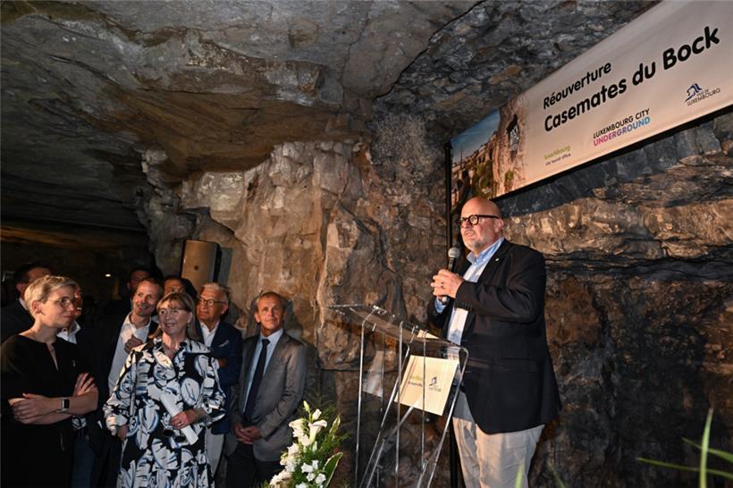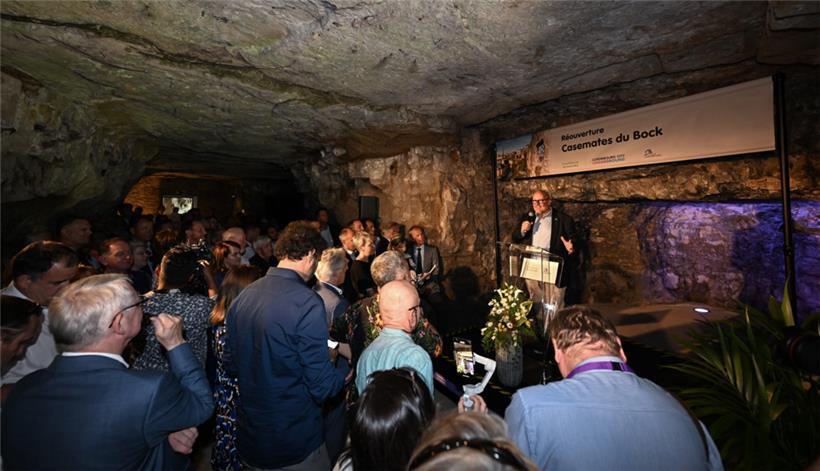 Es geht wieder los: Stadtbürgermeisterin Lydie Polfer (DP), der Präsident des Luxemburg City Tourist Office (LCTO), Marc Angel, und weitere politische Akteure haben am Freitag die Bock-Kasematten offiziell wiedereröffnet. Unter der farbigen Beleuchtung, die sich teils mit dem Sonnenschein abwechselte, der von draußen durch die Felsöffnungen hereinschien, liefen die Gäste der Eröffnung durch die Gänge. Ab dem 14. Juni sind die Bock-Kasematten dann auch wieder für alle Besucher zugänglich.
