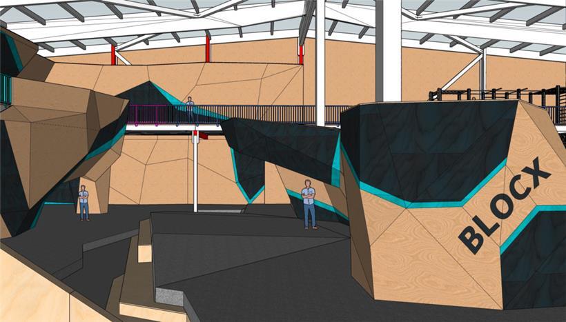 Zwölf Angestellte sollen hier einmal arbeiten, in allen angebotenen Sportarten soll unter Anleitung eines Profitrainers geübt werden können. Auch eine Yoga- und Multifunktionshalle wird Teil des Komplexes sein. Genauso wie ein Café-Restaurant und ein kleiner Shop, jeweils 200 m2 groß. Herzstück ist aber die Boulderhalle, die ebenfalls drei Trainingswände (zwei Kilterboards, ein Campusboard und eine Spraywall) beherbergen wird. Und neben dem von Lynn Jung entworfenen Parkour noch einen Ninja-Warrior-Parcours, angelehnt an die populären TV-Formate. Im Außenbereich soll ebenfalls eine Boulderwand aufgestellt werden.