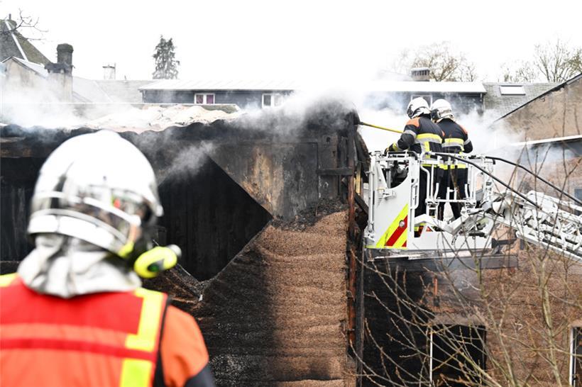 Die technischen Dienste der Gemeinde waren ebenfalls vor Ort, um Polizei und Feuerwehr zu unterstützen. Bei einem Großbrand werden auch immer der Bürgermeister und Schöffenrat kontaktiert. „Sie haben sich gegen 23.40 Uhr bei mir gemeldet und dann bin ich hierhin gekommen“, sagt CSV-Bürgermeister Christian Weis. „Bis in die Nacht hinein hat es richtig gebrannt.“ Danach waren zwar keine Flammen mehr sichtbar, allerdings stiegen noch immer dicke Rauchwolken aus dem Mauerwerk.