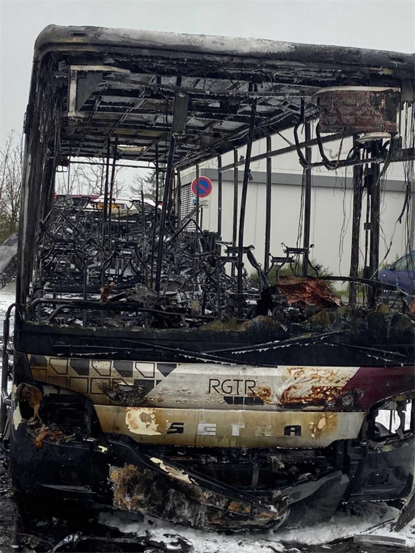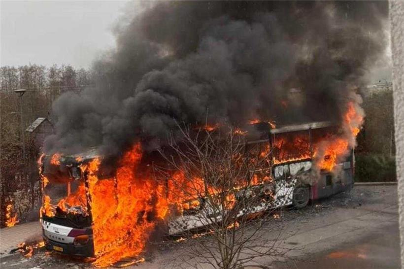 Schreckminuten in Schifflingen: In der Cité op Hudelen hat am Montagmittag ein Bus Feuer gefangen. Das Fahrzeug brannte komplett aus. Der Bus sollte später Kinder aus der Grundschule abholen.