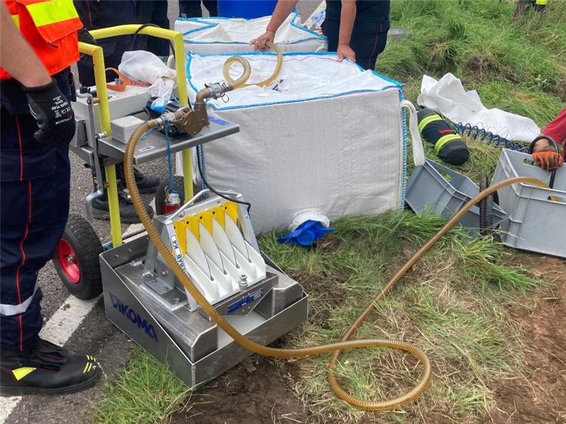 Die „Unité pollution“ der Gruppe zum Schutz vor nuklearen, radiologischen, biologischen und chemischen Risiken (NRBC) des CGDIS musste am Donnerstag der Feuerwehr Beckerich zu Hilfe eilen. Bei einem Verkehrsunfall zwischen Ell und Oberpallen war ein LKW auf die Seite gekippt, wodurch fast 1.000 Liter Kraftstoff auszulaufen drohten. Den vier Helfern gelang es, rund 800 Liter aus den Tanks in einen Faltbehälter umzupumpen, bevor eine Spezialfirma den weiteren Abtransport übernahm. Der LKW-Fahrer wurde bei dem Unfall leicht verletzt. (WiR)