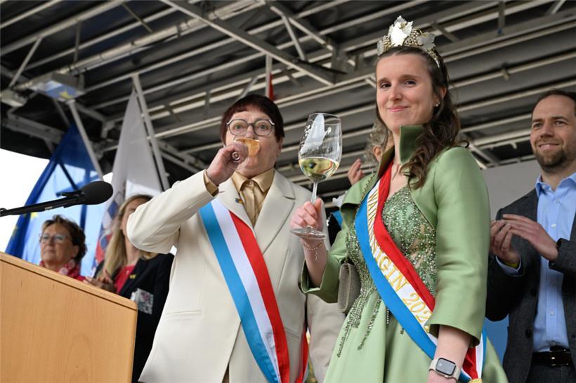 Gläser klirren, Korken knallen und plötzlich spielt die Harmonie municipale Grevenmacher „Kättchen, Kättchen“: Die Geräuschkulisse des 93. „Maacher Wäimoart“ am Freitagmorgen ist lebendig – ein Wort, das auf die ganze Veranstaltung passt. Luxemburger Winzerbetriebe präsentierten auf 36 Ständen ihre Weine, Crémants und den Jahrgang 2024. Der „Maacher Wäimoart“ ist traditionell der erste Veranstaltungstermin, bei dem man die neuen Weine verkosten kann.