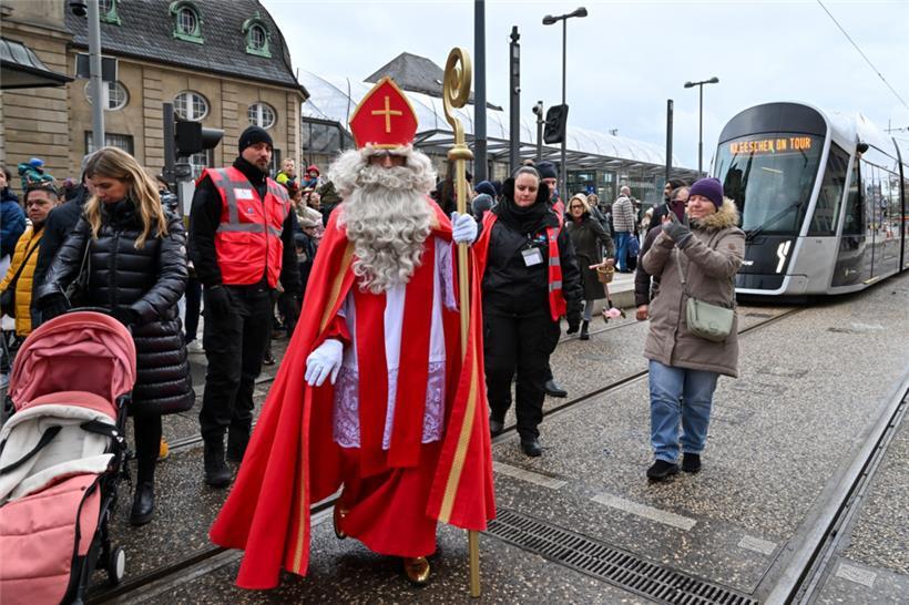 Es ist schon eine Tradition in der Hauptstadt: Per Tram reist der Nikolaus zum städtischen Hauptbahnhof, von wo aus er seinen Umzug in Richtung Oberstadt beginnt. Auch dieses Jahr machte der „Kleeschen“ Halt an der place de Paris und an der place Guillaume II (im Volksmund „Knuedler“ genannt) und verteilte dort mit Süßigkeiten gefüllte Tütchen an die wartenden Kinder der Stadt. Aufgelockert wurde der „Cortège“ mit Tanz und Musik.