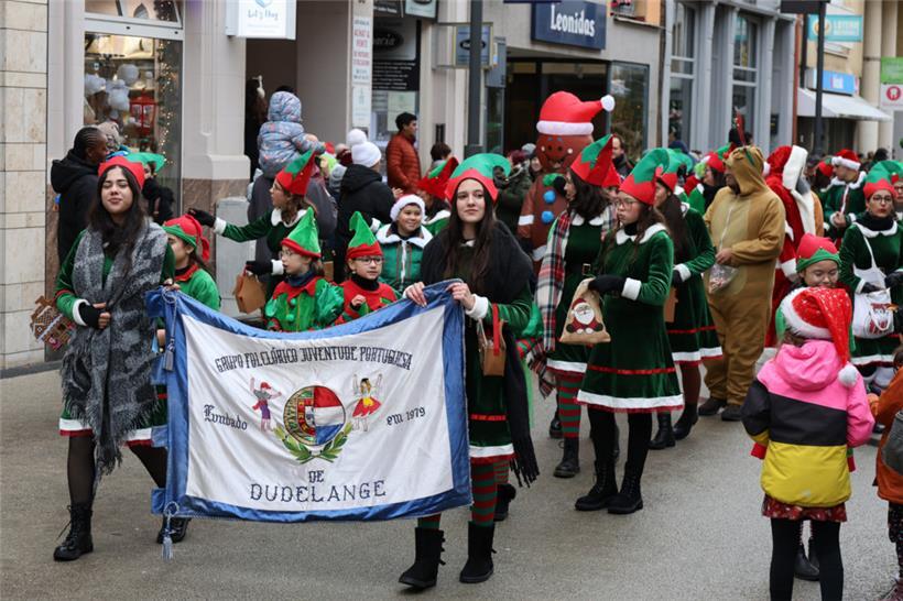 In Düdelingen zogen der „Kleeschen“ und seine Gehilfen durch die route de Burange zum Rathausplatz. In der Halle des „Hôtel de Ville“ durften die Kinder ihre Tüte mit Süßem zum Naschen entgegennehmen. Der „Zinniklos“ sorgte so dort, wo normalerweise Politik gemacht wird, für leuchtende Kinderaugen.