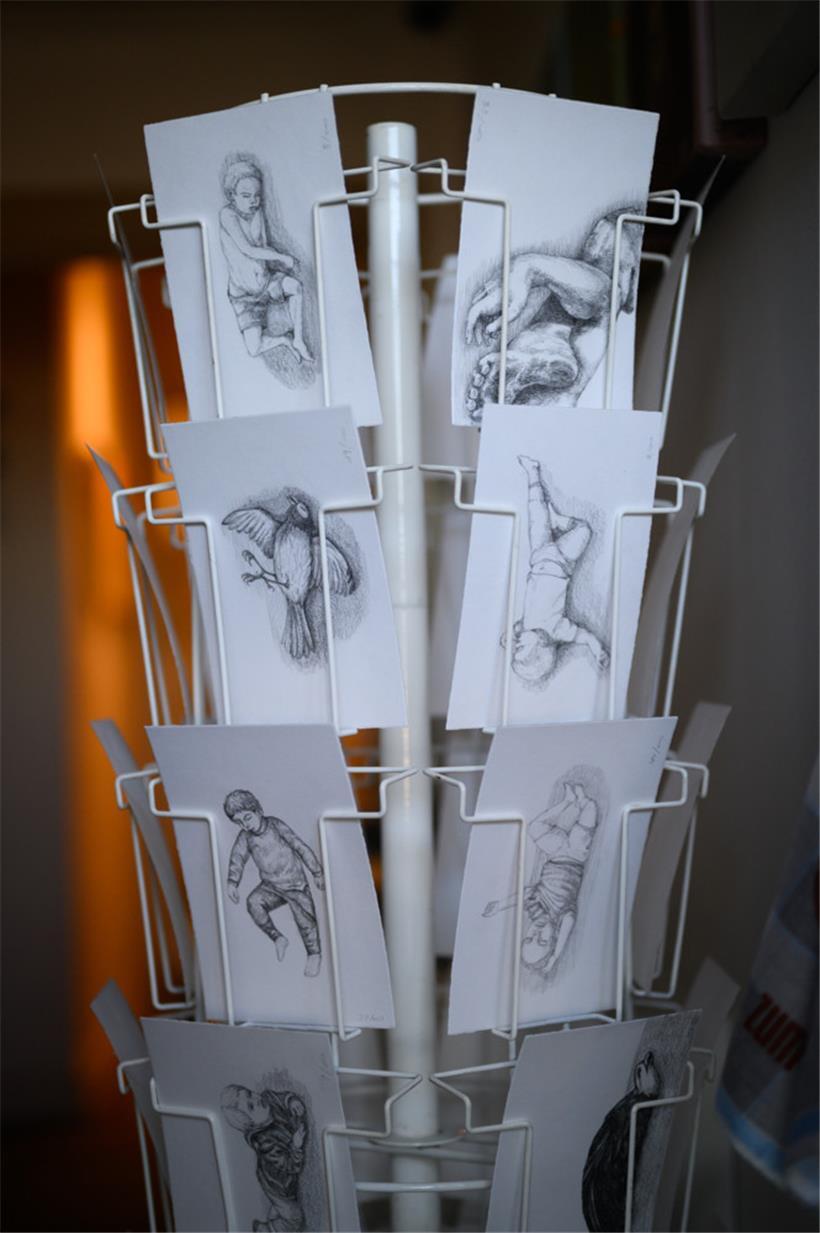 Ich mache nicht immer dasselbe, sondern wähle die Technik aus, die am besten zum Thema der Serie passt. Ich zeichne, male, modelliere, graviere, nähe und mache Collagen. Mir ist wichtig, etwas Zusammenhängendes zu schaffen, anstatt einzelner Werke. Bei Ausstellungen inszeniere ich deshalb gerne meine Werke. Um meine Serien festzuhalten, stelle ich oft ein Fotobuch zusammen. Aus einer Serie Stofftücher, die ich mit Motiven aus Märchen und aus der Bibel bedruckt hatte, habe ich eine Patchworkdecke geschaffen.