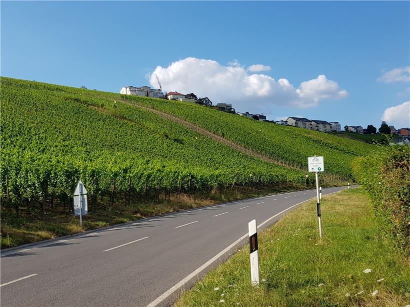 Vorweg: Die Route E über die Mosel und das Hinterland ist nur etwas für trainierte Radfahrer. Oder für E-Bikes. Jedenfalls sind die 85 km fordernd. Aber lohnend zugleich. Denn größtenteils fährt man auf Rad- und Feldwegen und kann zum Teil atemberaubende Ausblicke stressfrei genießen. Wenn da nicht die fehlende Beschilderung wäre, die das Zurechtfinden auf ungewohnten Terrain quasi unmöglich macht …
