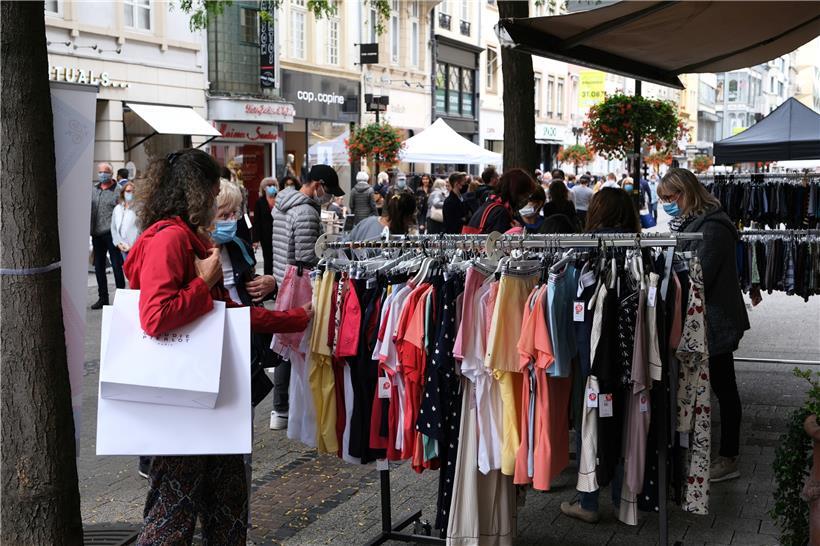 Die Stimmung auf der „Stater Braderie“ war am Montagmorgen ähnlich wie das Wetter: durchwachsen. Es schlängelten sich weniger Passanten durch das Zentrum als in den Vorjahren. Das hatte den Vorteil, dass die Abstandsregeln ohne großen Aufwand eingehalten werden konnte. Die Geschäftsleute versuchten optimistisch zu bleiben, auch wenn das einigen von ihnen sichtlich schwerfiel.