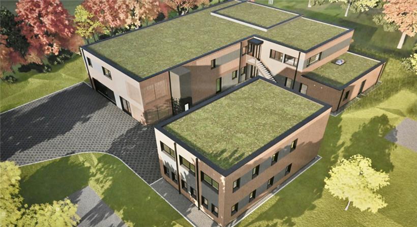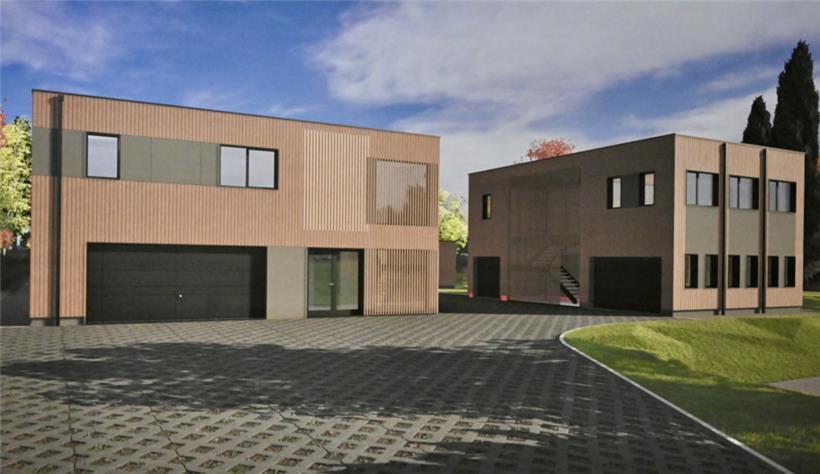 Das Besuchergebäude am Eingang des Geländes zeigt den Stil, in dem die anderen Gebäude entstehen sollen Foto: Editpress/Alain Rischard