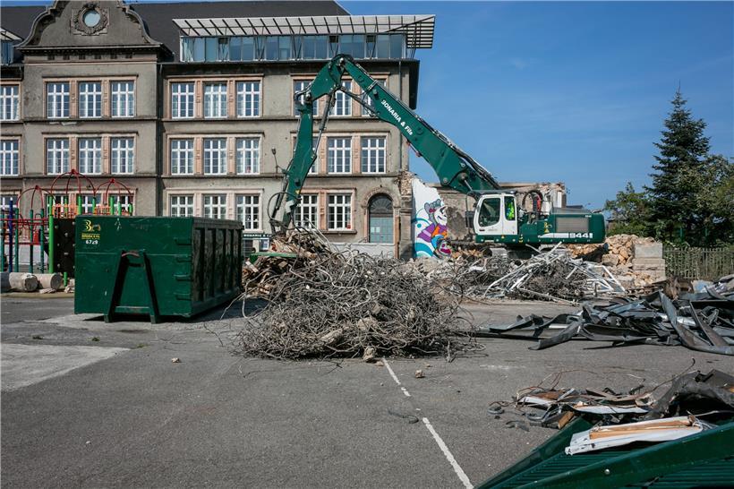 Nachdem im Frühjahr mit der Verpflanzung der 39 Bäume aus dem Schulhof die Vorarbeiten begonnen hatten, ist nun die erste Phase der Renovierung der Escher Brouch-Schule eingeläutet.