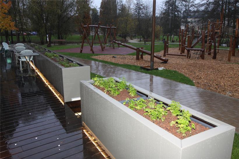 Die Idee hinter dem Projekt war es, die Neugestaltung der Grünanlage im Park mit einem komplett erneuerten Spielplatz und dem Pavillon, der zur Erholung und Freizeitgestaltung dienen soll, zu verbinden. Eine überdeckte Terrasse spendet im Sommer Schatten. Der mit einer Fotovoltaikanlage ausgestattete Pavillon, umgeben von einem großen Spielplatz, befindet sich mitten im Park, durch den die „Mess“ fließt. Kräuter aus den Hochbeeten werden in der Küche eingesetzt.