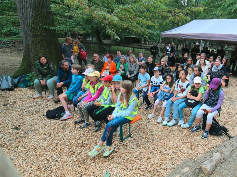 Interessiert lauschen die Kinder den Erläuterungen der lebensgroßen Fuchsfiguren Foto: André Feller