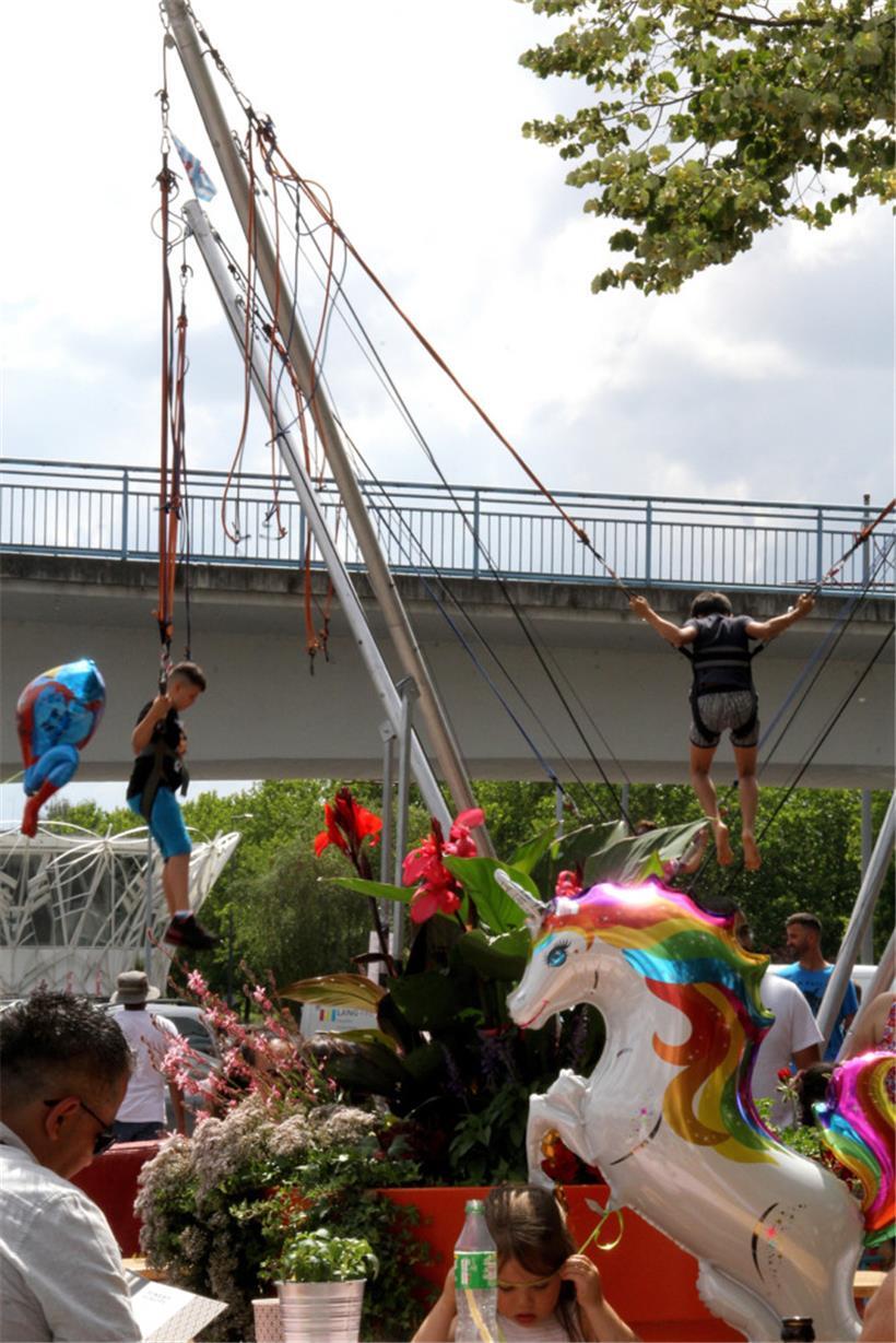 Mal was trinken: die Jungs von „Opyos Bverages“ aus Keiwelbach sind ebenfalls hier am Start mit ihrem erfrischenden „Lët’z Spritz“, ihrem Dry Gin, Sloe Gin oder Navy Strength Gin. Etwas zu viel Alkohol am frühen Nachmittag, wir entscheiden uns für prickelnde Perlen am Stand der nationalen Basketball-Elite, der Musel Pikes. Vinsmoselle-Präsident Josy Gloden schiebt hier auch Dienst und zeigt sich begeistert von der kulinarischen Vielfalt des Festivals und dem seit drei Tagen anhaltenden Besucherstrom.