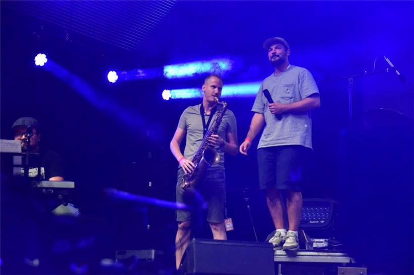 Zur ausgelassenen Feier hat auch die deutsche Hip-Hop-Crew 257ers geladen, die unter anderem ihr „Holz“ mitgebracht hat – beziehungsweise eine herrlich sinnbefreite Hymne auf das Stück Baum für alle Lebenslagen: Rasant gerappte lakonische Lebensbetrachtungen, die gerne auch mit einem großen Schuss Selbstironie garniert wurden, gab es auch von den Luxemburger Hip-Hoppern von De Läb, die seit 2010 eine Dauerkarte für das Festival haben: Sie haben sich zwar auch die Corona-Mini-Version (für handverlesene Gäste) nicht entgehen lassen, aber endlich wieder richtig „im Haus“ zu sein, hat offenbar einen ziemlichen Energieschub gegeben – auch hier hatten Band und Publikum jedenfalls sehr viel Spaß miteinander.