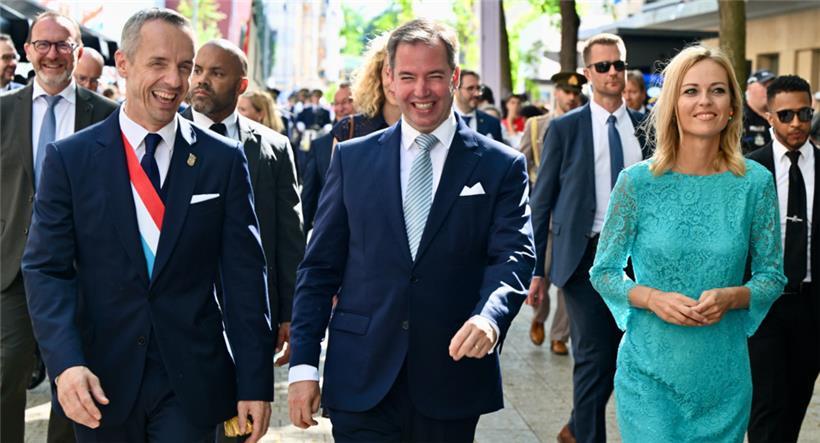 Tausende kamen in Luxemburg-Stadt zusammen, um diesen besonderen Tag zu feiern. So begann das Spektakel mit der Wachablösung vor dem großherzoglichen Palast, gefolgt von dem traditionellen „Fakelzuch“, an dem rund 2.500 Menschen teilgenommen haben. Danach wurde die großherzogliche Familie von Bürgermeisterin Lydie Polfer (DP) und dem Ersten Schöffen, Serge Wilmes (CSV) auf dem Knuedler in Empfang genommen. Im Anschluss folgte das ebenfalls traditionelle Feuerwerk, das den Himmel dieses Jahr während 17 Minuten erhellte.
