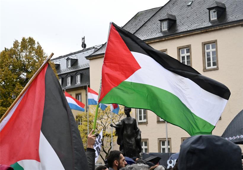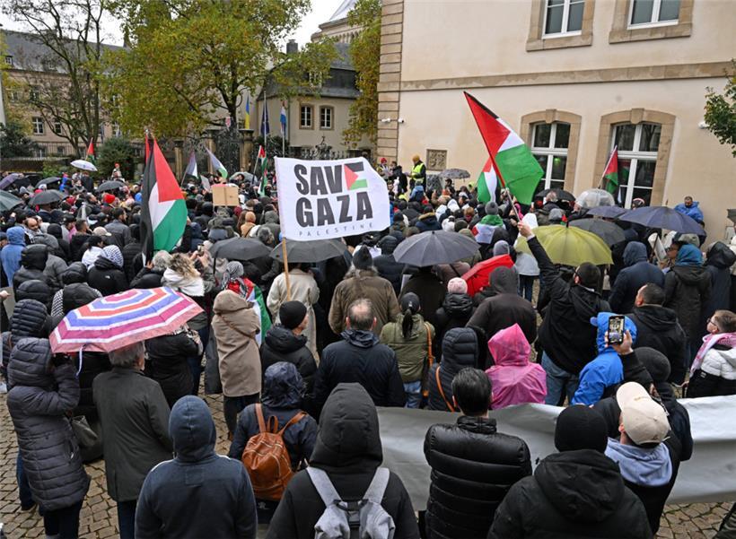 Demonstranten versammelten sich am Samstag auf der place Clairefontaine in der Hauptstadt, um den sofortigen Waffenstillstand in Gaza zu fordern Foto: Editpress/Hervé Montaigu