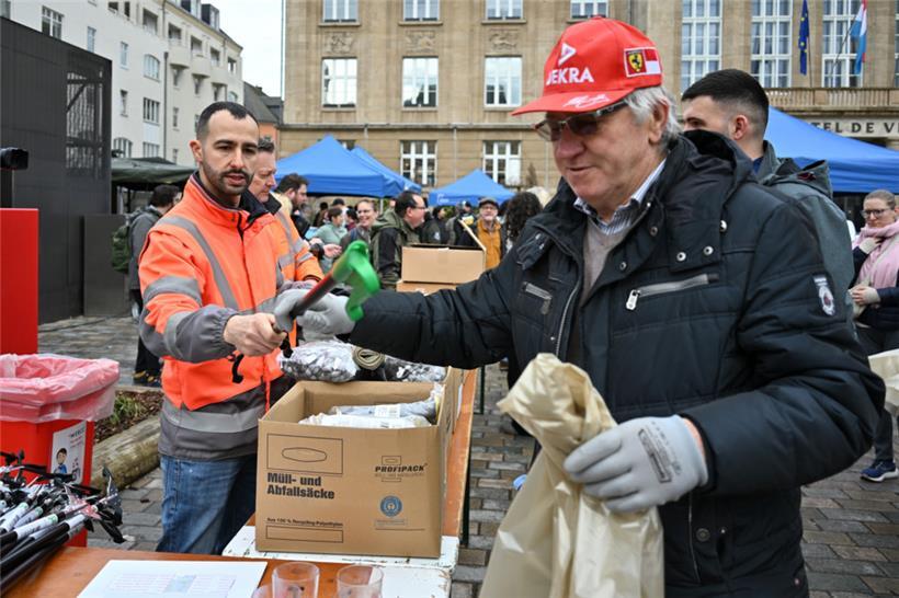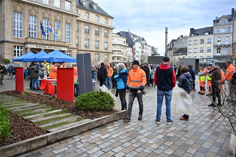 Am Samstagmorgen haben sich zahlreiche freiwillige Helferinnen und Helfer auf dem Rathausplatz in Esch versammelt, um an der diesjährigen „Grouss Botz“ teilzunehmen. Nach der Ausgabe von Handschuhen und Müllsäcken wurden die Teilnehmer in Gruppen eingeteilt und machten sich entlang vorgegebener Routen auf den Weg, um achtlos weggeworfenen Abfall in der Stadt einzusammeln. Bis zum Mittag kehrten die Gruppen zurück – im Gepäck: viele gefüllte Müllsäcke. Als Dankeschön warteten auf dem Rathausplatz ein warmes Essen und Getränke auf die fleißigen Helfer.