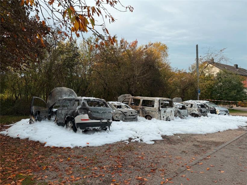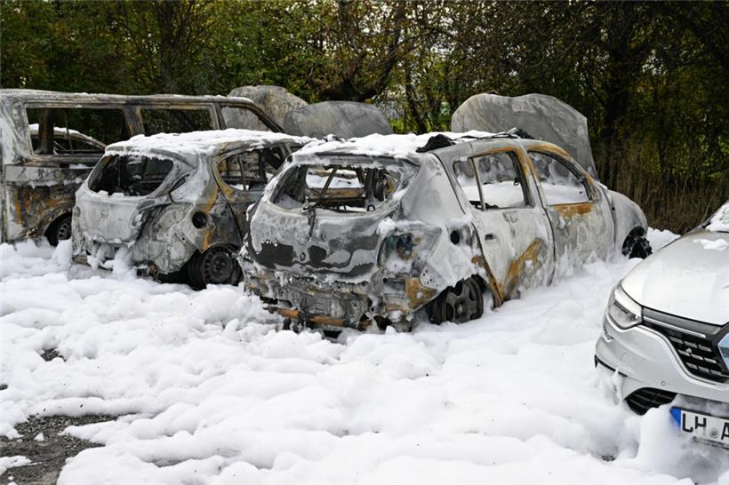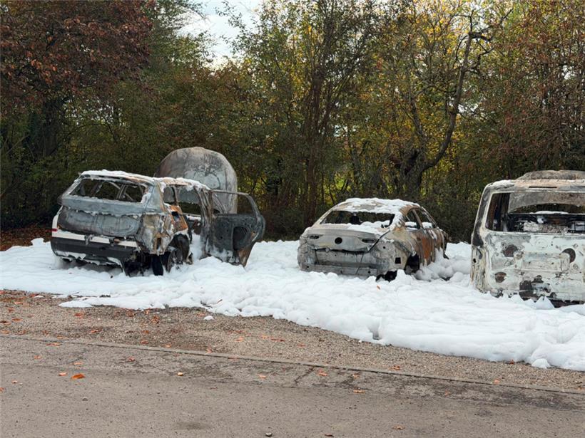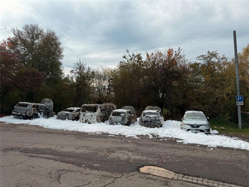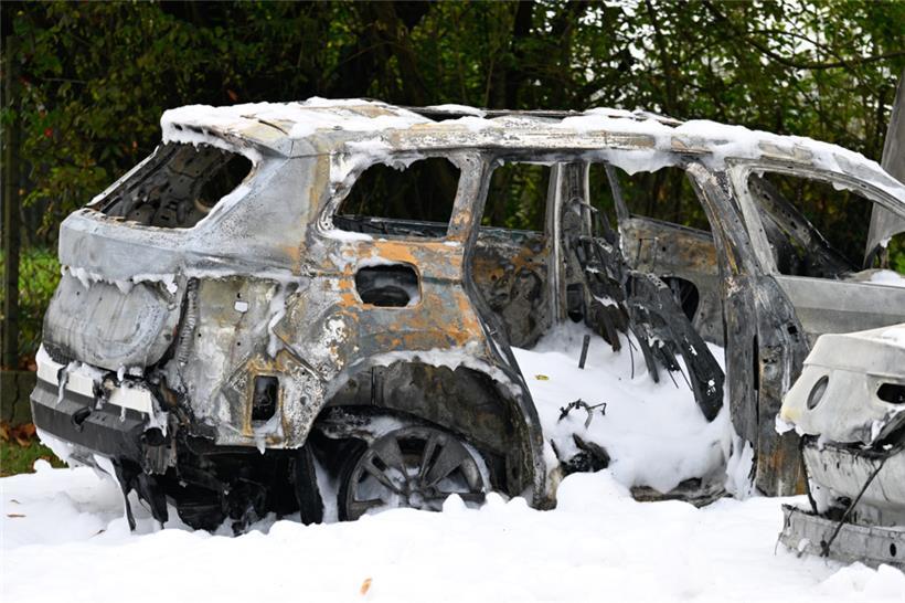 Fünf Autos sind am Bahnhof Belval-Rédange komplett ausgebrannt