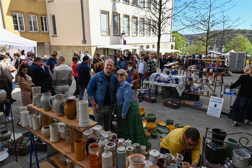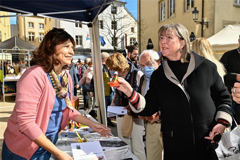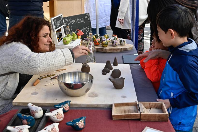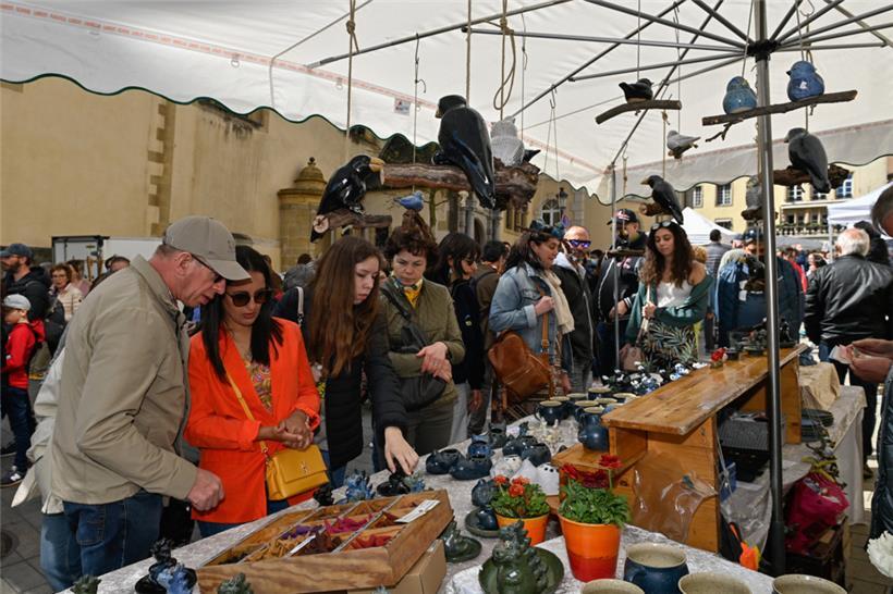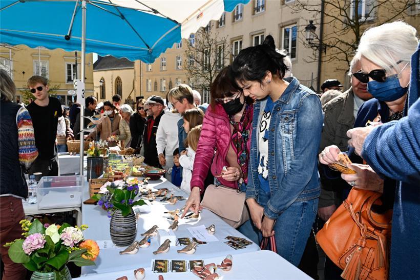Harmonie herrschte am Montag auch an den Verkaufsständen, wo in großer Überzahl lokal hergestellte Erzeugnisse des Töpfer- und Kunsthandwerks im Angebot waren. Die Stände mit Lederwaren, Strohkörben, Stofftieren sowie ein kleiner Flohmarkt befanden sich an den Rändern des Marktes. Im Zentrum des Geschehens standen wie gewohnt die „Péckvillercher“, wo die ersten Kunden bereits früh am Morgen nach den neuen Editionen dieses Jahres Ausschau hielten.