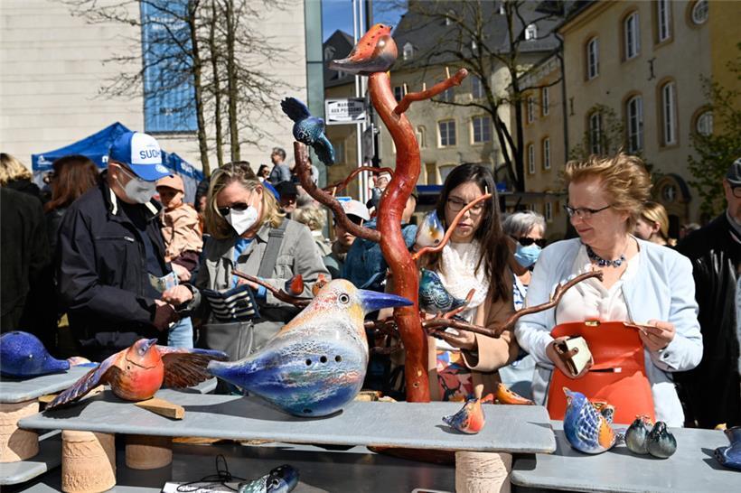 Seit 1957 wird die Éimaischen gleichzeitig auch in Nospelt ausgetragen, wo sich an diesem Ostermontag zahlreiche Aulebäcker darauf freuten, Sammler und Schaulustige erstmals wieder an ihren Ständen begrüßen zu können. Zwar war die Veranstaltung in Pandemiezeiten nicht ganz ausgefallen, allerdings konnten die Kunden ihre Sammlerstücke in den letzten zwei Jahren nur auf Bestellung im Fahrzeug abholen.