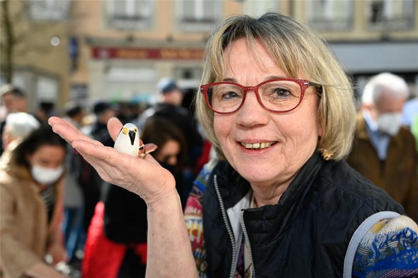 Neben den traditionellen Formen gab es die begehrten Keramikpfeifen aus gebranntem Ton auch mal eckig oder ganz avantgardistisch. Bei den Farben gab es von diskretem Schwarz-Weiß mit Goldtupfer bis zu grellen Neonfarben derart viele Varianten in glänzend und matt, dass wohl für jeden Geschmack etwas dabei war. Bei den Pfeiftönen beschränken sich die einfachen „Péckvillercher“ auf zwei Töne. Ausgefeiltere Modelle kann man indessen regelrecht als Flöte nutzen, sogar mit Auswahl der Tonart. Solche Modelle kosten dann aber bis 165 Euro, wohingegen einfache Pfeifvögel ab 15 Euro zu haben sind.