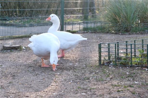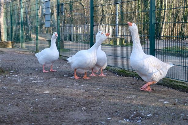 Trotz ihrer Unterschiede leben Gänse und Enten im „Escher Déierepark“ friedlich nebeneinander, auch wenn sie sich nicht mischen. Gänse bleiben unter sich, Enten ebenso. Ihre Lebensweisen sind zu verschieden: Gänse sind strenge Vegetarier, die am liebsten Gras, Kräuter und Körner fressen. 30 von ihnen schaffen es, so viel Gras zu fressen wie eine Kuh – ein Grund, warum sie früher wie heute als natürliche Landschaftspfleger geschätzt werden. Enten hingegen sind Allesfresser und gehen begeistert auf Schneckenjagd, was sie in vielen Gärten zu willkommenen Helfern macht. „Laufenten sind total im Trend – sie fressen Schnecken und helfen so im Gemüsegarten“, erklärt Da Silva.