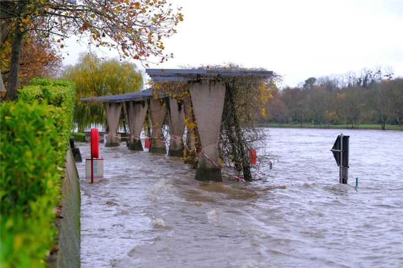 Die neue Uferpromenade in Ehnen unter Wasser Foto: Editpress/Claude Lenert