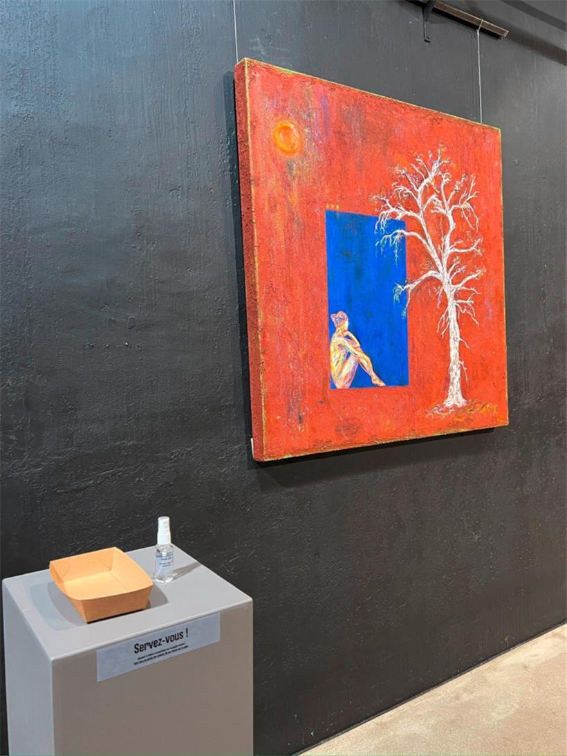 Ein Dufterlebnis: Das Spray neben den Gemälden dient nicht der Desinfektion, sondern ist der Duft zur Kunst Fotos: Catia Pereira